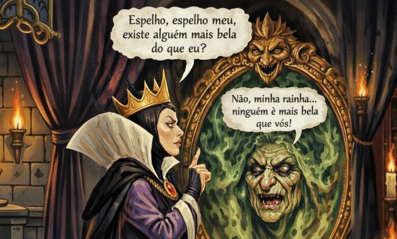 A pergunta clássica da vilã ou Madrasta Má (da Branca de Neve) nunca foi sobre beleza. Sempre foi sobre vaidade, negação e medo da verdade.