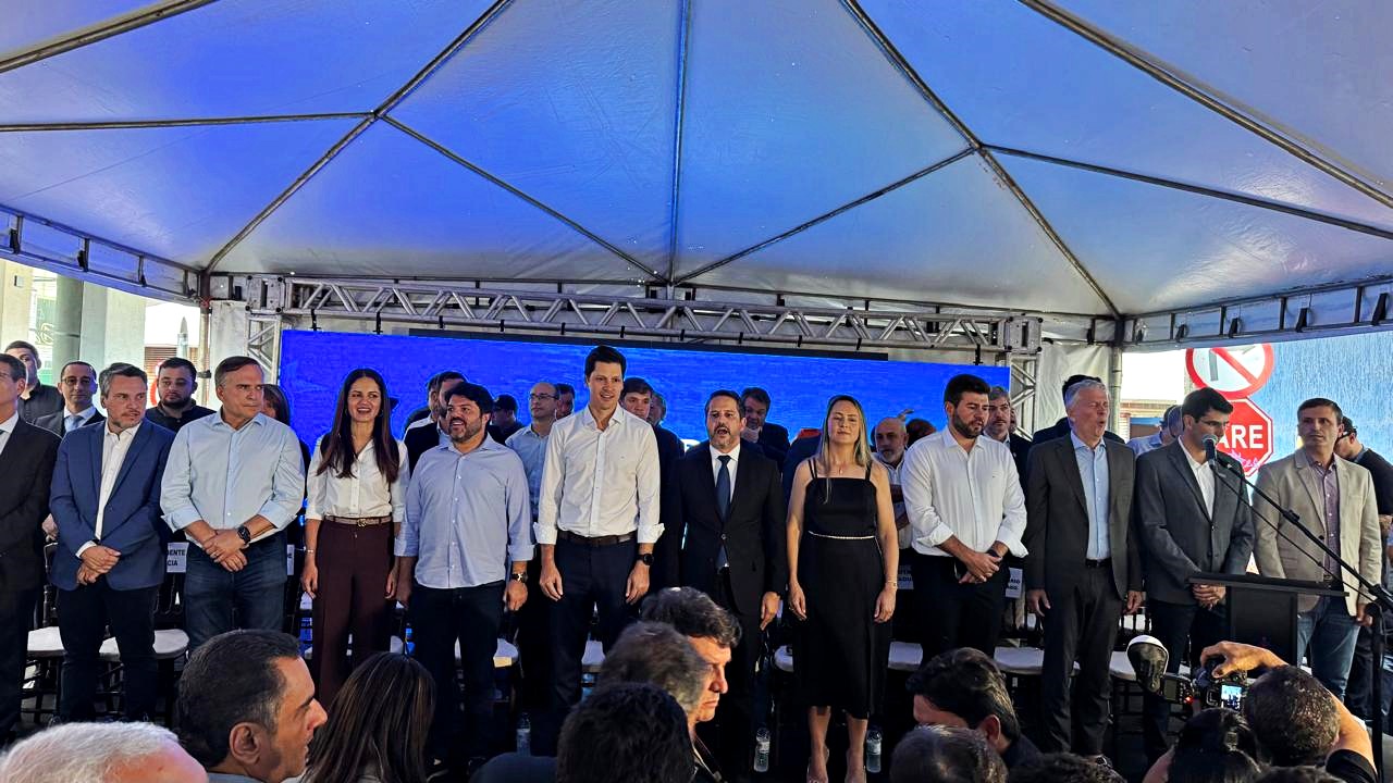 O evento ocorreu em um palco montado em frente à sede da Associação Comercial e Industrial de Anápolis (ACIA) e reuniu lideranças políticas, empresariais, representantes de entidades de classe e a imprensa.