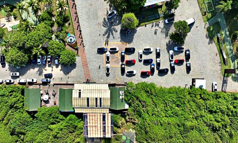 Em um dos primeiros encontros de proprietários de Tesla realizados no Brasil, em 2022 em Balneário Camboriú, os carros presentes formaram a palavra “Tesla” dando uma ideia do número de carros da montadora no Brasil naquele ano.